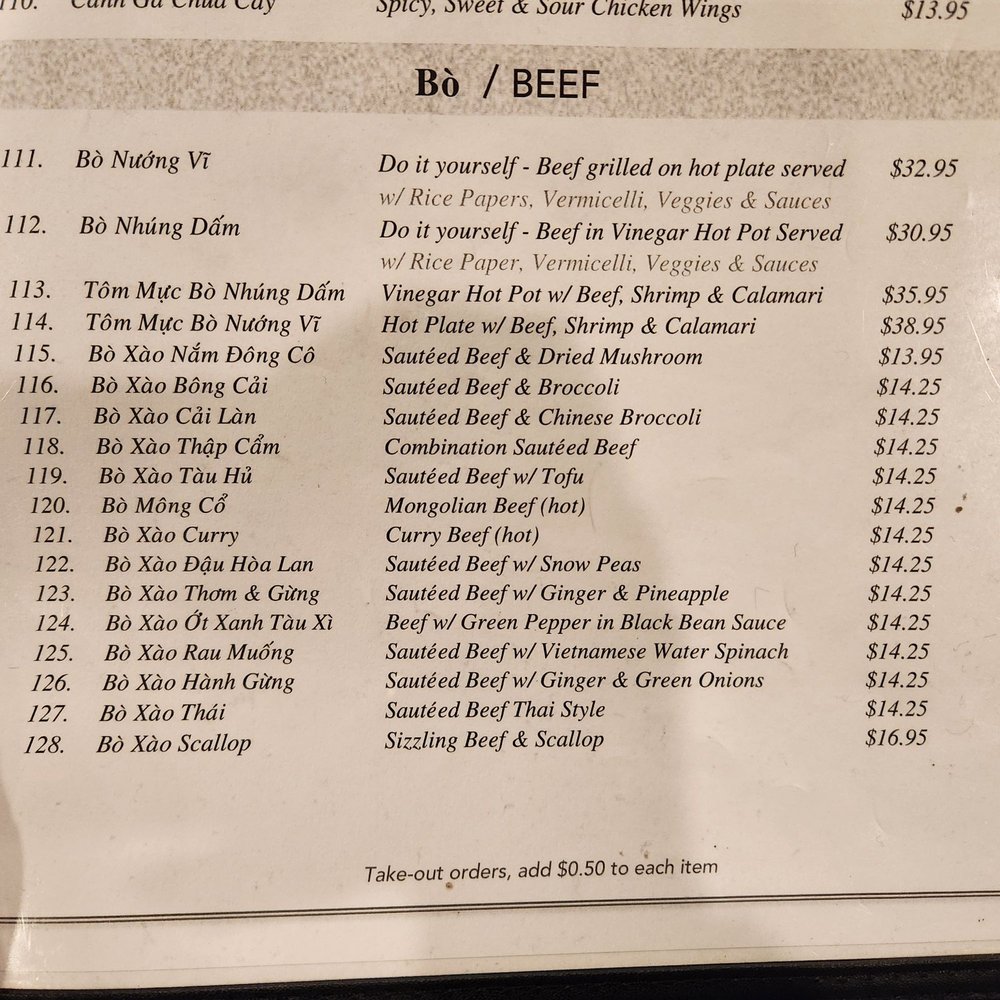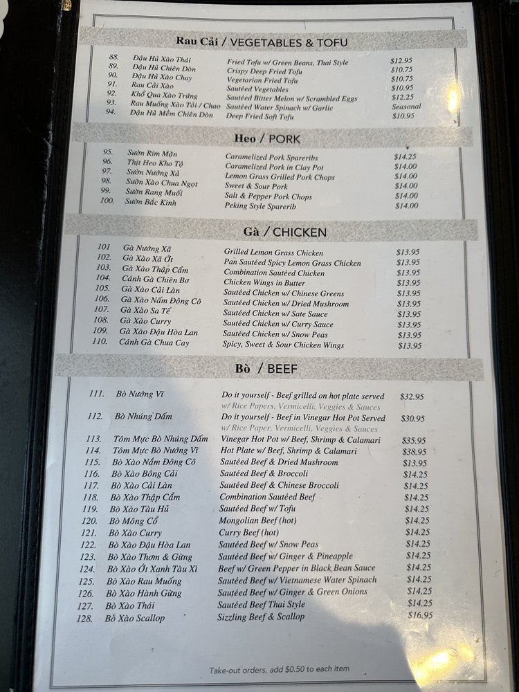 Located in San Jose, CA, Cao Nguyen Restaurant offers a taste of authentic Vietnamese cuisine with a modern twist. With a variety of dishes ranging from chicken fried rice to catfish in clay pot, this restaurant is a go-to spot for those craving traditional northern Vietnamese flavors. The cozy atmosphere and attentive staff make dining here a memorable experience. Customers praise the consistency in flavors and the welcoming service, making it a favorite spot for both individuals and large groups. Must-try dishes include Lau Thai, Ca Kho, and the grilled pork bites. Whether you're a longtime fan or a newcomer looking to explore Vietnamese cuisine, Cao Nguyen Restaurant promises a satisfying and delicious dining experience.
